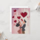 A charming, animated-style illustration of a couple lost in a moment of joy and affection, surrounded by vibrant red hearts floating against a soft pink background. The couple, dressed in vintage attire, gaze at each other with expressions of love and happiness, capturing the whimsical essence of romance.