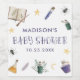 Add a spellbinding touch to your baby shower beverages with this whimsical magic potions wine label. Featuring hand-painted watercolor illustrations of enchanted books, potion bottles, stars, feathers, and spiders, this design brings a fun and mystical vibe to your celebration. Customised with the mum-to-be’s name and shower date, it's perfect for dressing up wine bottles, sparkling cider, or other party drinks. A charming addition to Halloween or witchy-themed baby showers.