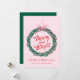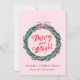 Whimsical Merry and Bright Wreath Pink Non-Photo Holiday Card