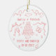 Personalised first christmas wedding ornament, designed in a romantic whimsical doodle style. With the text "Merry and married". Featuring hand-drawn details like champagne glasses, hearts, a wedding cake, an engagement ring, and sweet bows with swirly ribbons, it’s a charming keepsake to remember your engagement year. Add your names and engagement date. All colours can be customised in the design tool, making it easy to match your style or holiday décor. A thoughtful gift for couples, fiancés, or as a special Christmas tree memory to treasure for years to come.