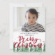 Spread holiday cheer with this festive card featuring a hand-lettered cursive font that reads "Merry Christmas" and sketched green pine trees below. Add your photo and family name to customise. The backside features a red and white polka dot pattern. Casual and fun - a card that's sure to make friends and family smile.