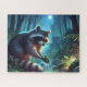 Whimsical Midnight Racoon and Frog Forest River Jigsaw Puzzle