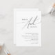 This whimsical minimalist script wedding invitation is perfect for your classic simple black and white minimal modern boho wedding. The design features elegant, delicate, and romantic handwritten calligraphy lettering with formal shabby chic typography. The look will go well with any wedding season: spring, summer, fall, or winter! The product is editable and has plenty of blank space, so you can add your own graphics or pictures if you want to customise it! Please feel free to reach out with any questions regarding the product's design; we are happy to help!