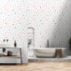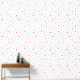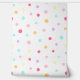 Transform your space with this Peel and Stick Wallpaper featuring a whimsical polka dot pattern in bright colours - purple, turquoise, yellow, light yellowish green and pink shades on a white background. This wallpaper brings a playful look to any room. Perfect for kids' rooms, nurseries, hallways, and any area needing a cheerful touch. Easy to apply and remove, it's an ideal choice for creating a fun and inviting look in any space. - Kate Eden Art