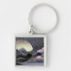 Whimsical Moon and Mountains Abstract Art Key Ring
