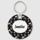 Whimsical Moon, Stars and Clouds Pattern on Black Key Ring