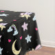 Whimsical Moon, Stars and Clouds Pattern on Black Tablecloth