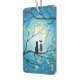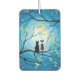 Two cats sitting on a branch watching the full moon with a blue sky filled with stars. The branches of the trees surrounding them with small yellow flowers. Black tuxedo cat and a bi-colour white and grey spotted cat. Original Modern Whimsical Acrylic Painting by Donna Leger. All Rights Reserved. ©irony designs