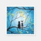 Two cats sitting on a branch watching the full moon with a blue sky filled with stars. The branches of the trees surrounding them with small yellow flowers. Black tuxedo cat and a bi-colour white and grey spotted cat. Original Modern Whimsical Acrylic Painting by Donna Leger. All Rights Reserved. ©irony designs
