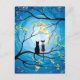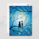 Two cats sitting on a branch watching the full moon with a blue sky filled with stars. The branches of the trees surrounding them with small yellow flowers. Black tuxedo cat and a bi-colour white and grey spotted cat. Original Modern Whimsical Acrylic Painting by Donna Leger. All Rights Reserved. ©irony designs