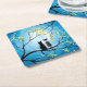Whimsical Moon with Cats Square Paper Coaster