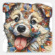 Brighten your day with this joyful, mosaic‑style dog illustration, bursting with color, personality, and playful charm. The expressive eyes, patterned details, and cheerful tongue create a lively, heart‑warming design that feels both artistic and fun.