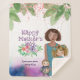 Beautiful hand-painted Mother's Day Illustration on a Sherpa blanket featuring a Mother, a little girl, and a baby with a beautiful Mother's Day wish with flowers.