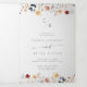 Celebrate your love story with this whimsical multicolor wildflower monogram wedding tri-fold program, a perfect blend of rustic beauty and refined elegance. The design features seamless hand-painted burgundy, red, navy, blue, yellow, and blush wildflowers with botanical leaves. This tri-fold design brings both charm and sophistication to your wedding day.