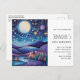 Whimsical Night Big Moon Landscape Birthday Invitation Postcard