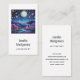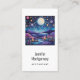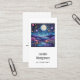 Business cards with a beautiful illustration. Whimsical and fanciful vibe. A big glowing moon with stars all around. Hanging over a lovely landscape of trees, mountains and a winding river.