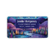 Address labels with a beautiful illustration. Whimsical and fanciful vibe. A lovely landscape of trees, mountains and a winding river. Mystical vibe.