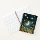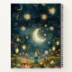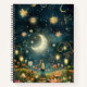 Step into a magical dreamscape of celestial sky filled with glowing golden stars and crescent moons. A young girl stands in a field of vibrant flowers in warm coral, pink, and orange colours. The glowing lanterns and swirling golden vines add a touch of fairy-tale charm, while the deep navy night sky is alive with luminous light and swirling constellations. A notebook perfect for journalling, note-taking, or as a thoughtful gift.