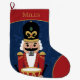 Personalised Nutcracker Christmas Stocking Bring whimsical charm to your holiday decor with this personalised Nutcracker Christmas stocking. Featuring a classic Nutcracker soldier standing tall on a rich, tone-on-tone blue background adorned with holly leaves and berries, this stocking captures the festive spirit of the season. The vibrant red banner at the top adds a perfect spot for personalisation, making it a cherished addition to any fireplace mantel. Ideal for adding a traditional yet playful touch to your Christmas celebrations. Perfect for holiday gifting or creating a personalised holiday experience.