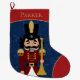 Personalised Nutcracker Christmas Stocking Bring whimsical charm to your holiday decor with this personalised Nutcracker Christmas stocking. Featuring a classic Nutcracker soldier standing tall on a rich, tone-on-tone blue background adorned with holly leaves and berries, this stocking captures the festive spirit of the season. The vibrant red banner at the top adds a perfect spot for personalisation, making it a cherished addition to any fireplace mantel. Ideal for adding a traditional yet playful touch to your Christmas celebrations. Perfect for holiday gifting or creating a personalised holiday experience.