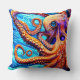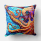 Whimsical Octopus Blue Ocean Wave Cubism Cushion