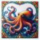 A stunning artwork showcases a vividly coloured octopus, swirling amidst dynamic waves. The intricate tile design features bold patterns and rich hues, capturing the essence of ocean life in an imaginative and artistic manner.