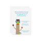 Colourful children birthday party invitation, with graphics of a cute owl sitting, on a tree trunk. Aquamarine text ready to personalise for your child's special day. Great for boys or girls alike.