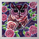 Whimsical Owl on Flowering Branch Pink Blue