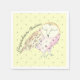 Whimsical watercolor illustration features sweet owl in heart patterned outfit on yellow background. Personalise with name or special message