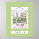Whimsical Paris and Eiffel Tower "PARIS" Poster. An Original Watercolor Painting adorns this green border poster.