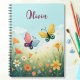 This personalised notebook features a charming and whimsical illustration of a pastel butterfly garden, where two colourful butterflies flutter among soft wildflowers. The dreamy background features a subtle wash of flowers, creating a soothing and enchanting atmosphere.