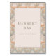 This elegant wedding tabletop sign features a vintage-inspired design with soft pastel hues of pale peach, light blue-green, and cream. The intricate floral pattern, reminiscent of Art Nouveau, frames the central white space where "DESSERT BAR" is elegantly displayed in classic serif typography, inviting guests to indulge in sweet treats. The symmetrical layout and flowing botanical motifs create a warm, welcoming atmosphere perfect for any celebration.