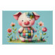 Whimsical Patchwork Pig in Floral Garden Poster