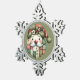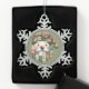 Whimsical Patchwork Santa Folk Christmas Snowflake Pewter Christmas Ornament