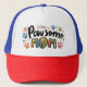 Whimsical "Pawsome MOM" Graphic with Colorful Paws Trucker Hat