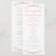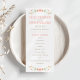 Charming folk-style floral sprigs in soft peach, coral, and green frame this whimsical flat ceremony program on a clean white background. Your names, date, and full ceremony order are presented in warm peach typography with a playful dot accent divider. The back features your wedding party and a thank you. Fully customisable on both sides.