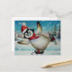 Whimsical Penguin Ice Skating Watercolor Art Postcard