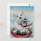 Whimsical Penguin & Polar Bear Watercolor Art Postcard