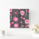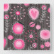 Whimsical pink and grey hearts and flowers floral square wall clock