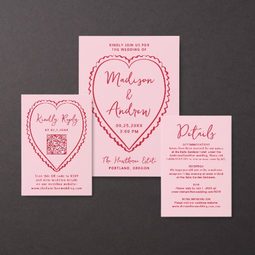 Set the tone for your romantic celebration with this whimsical Valentine's Day-inspired save the date! The design features "Save the Date" in bold red handwritten script, encircled by a hand-drawn heart on a pink background, blending retro charm with a unique, playful touch. Perfect for February weddings or love-filled themes, this announcement is fully customisable—add your names, wedding date, and location to make it truly personal. Capture the excitement of your big day and give your guests a heartfelt preview they'll adore!