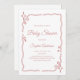 Add a touch of sparkle and charm to your baby shower with this whimsical pink invitation, featuring a playful wavy border accented with shining stars and curls. The elegant script font paired with fun decorative details makes this design perfect for celebrating the mum-to-be in style — whether you're hosting a chic afternoon tea, a cosy brunch, or a glam baby sprinkle.