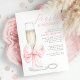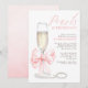 Whimsical Pink Bow Pearls & Prosecco Bridal Shower Invitation