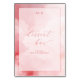 This wedding tabletop sign features a soft, pastel pink background with a dreamy watercolor wash effect, creating an airy and whimsical atmosphere. The design includes elegant cursive typography for "dessert bar" and a friendly sans-serif font for the phrase "please help yourself," offering both sophistication and clarity. Customisable initials at the top add a personal touch, making it perfect for enhancing the dessert station at your celebration. The balanced layout and warm colour palette evoke a playful yet refined mood, ideal for any festive occasion.
