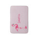 Fun pale pink bath mat, with a cartoon style pink flamingo, on the left side. Personalise the pink text for yourself or as a great gift idea.