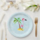 Whimsical Pink Flamingo Tropical Christmas Paper Plate