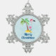 Whimsical Pink Flamingo Tropical Christmas Snowflake Pewter Christmas Ornament
