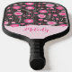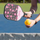 Whimsical pink grey hearts and flowers floral name pickleball paddle