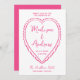 Set the tone for your celebration with this pink heart wedding invitation, featuring handwritten pink script and a hand-drawn heart on a white background. The contrast between the vibrant pink lettering and white space creates a romantic yet modern look that feels playful, fresh, and timeless. The couple’s names are displayed at the center of the heart, with the wedding details arranged below in a balanced, easy-to-read layout. Suitable for year-round weddings and a variety of styles, this invitation can be personalized with your names, wedding date, and venue to create wedding stationery that feels warm, joyful, and beautifully designed.