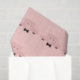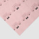 Tissue paper with a repeating pattern - a drawing of a cute pink pig's face. Wearing a black bow tie. Lifted up by his black cloven hooves and peering over a table. Cute and whimsical drawing. Set on a pink background with some faded hearts here and there.