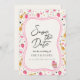 A charming save the date design featuring a soft pink palette with playful illustrations of strawberries, wine glasses, champagne bottles, hearts, and cupcakes. The elegant hand-lettered typography blends romance with a fun, modern vibe, making it ideal for couples who want a joyful and stylish wedding announcement. Perfect for spring or summer weddings, bridal celebrations, and romantic themes with a lighthearted twist.